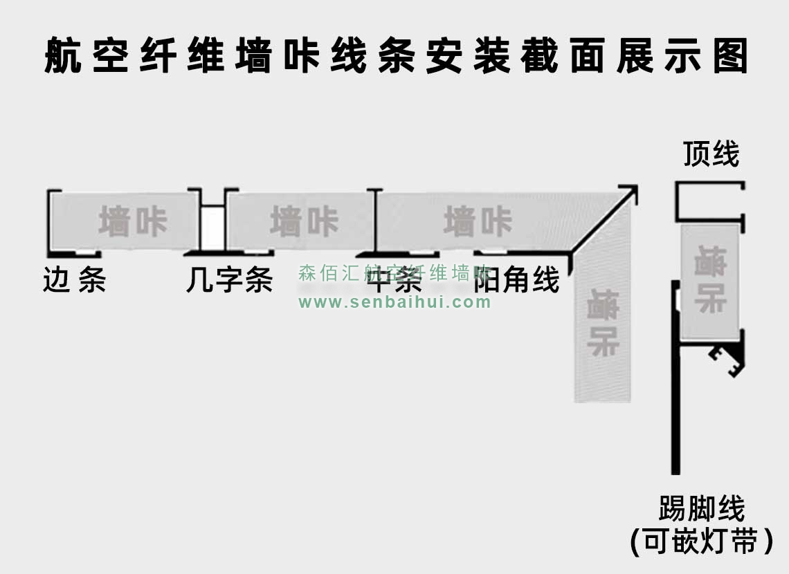 航空纤维墙咔铝合金带灯中条(钛金氧化)